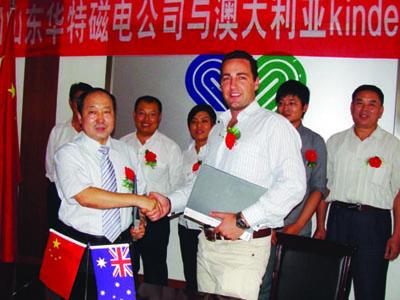 9月19日,我公司與澳大利亞kinder公司代理合作協(xié)議簽訂儀式在公司二樓會議室舉行,公司董事長兼總經(jīng)理王兆連與kinder公司技術(shù)總經(jīng)理查爾斯charles在協(xié)議上簽字。