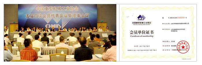 中國(guó)重型機(jī)械工業(yè)協(xié)會(huì)五屆四次會(huì)員代表會(huì)議暨理事會(huì)議于2011年5月8日至9日在北京召開(kāi)。會(huì)議批準(zhǔn)我公司為中國(guó)重型機(jī)械工業(yè)協(xié)會(huì)五屆常務(wù)理事。