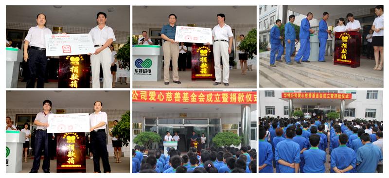 8月1日,公司工會、黨支部、團委發(fā)起成立華特愛心慈善基金會并舉行捐款儀式。公司各位股東、領(lǐng)導(dǎo)、員工踴躍捐款,其中,臨沂潤興投資有限公司捐款10萬元,公司董事長兼總經(jīng)理王兆連個人捐款10萬元,公司各位領(lǐng)導(dǎo)、員工捐款5萬余元。在捐款儀式上,王兆連董事長還代表公司愛心慈善基金會向臨朐大陡溝小學(xué)捐款2萬元。