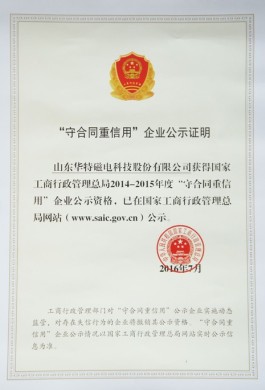 本次我公司獲得國家級“守合同重信用”企業(yè)公示,進(jìn)一步增強(qiáng)了華特公司的知名度,提高了華特公司的軟實力。