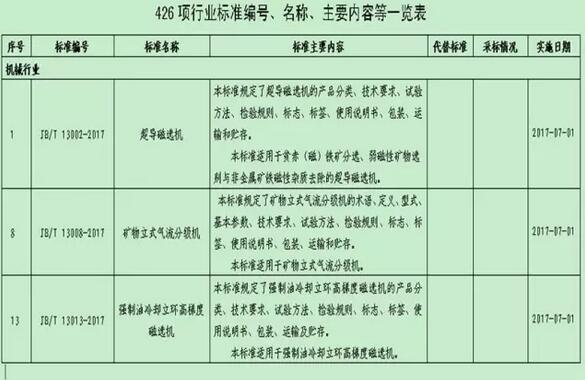 上述行業標準的制定填補了礦山設備行業標準的空白,有利于進一步指導和促進磁選和分級技術的發展,促進行業技術進步與優化升級,推動新技術、節能、環保等戰略新興產業的培育,為設計、制造、檢驗及使用等部門提供合理的參數和有效的技術依據;有利于幫助企業提高市場競爭力,促進經濟技術合作和對外貿易。
