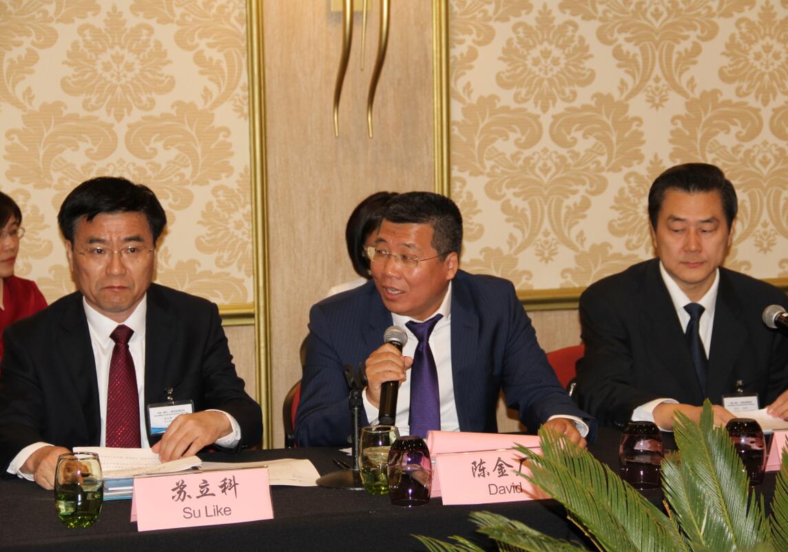 濰坊市政協(xié)主席蘇立科率領濰坊市政府和企業(yè)家代表團參會。濰坊市政協(xié)秘書長許華、濰坊市外事與僑務辦公室副主任宋悅林、濰坊市外事與僑務辦盧杰科長、濰坊市投資公司董事長王曰普、山東華特磁電科技股份有限公司董事長王兆連、海王化工董事長楊春彬、聯(lián)興新材料董事長王佐任、瑞德人力資源公司董事長袁錫龍等領導和企業(yè)家出席會議。