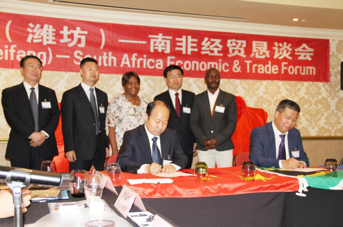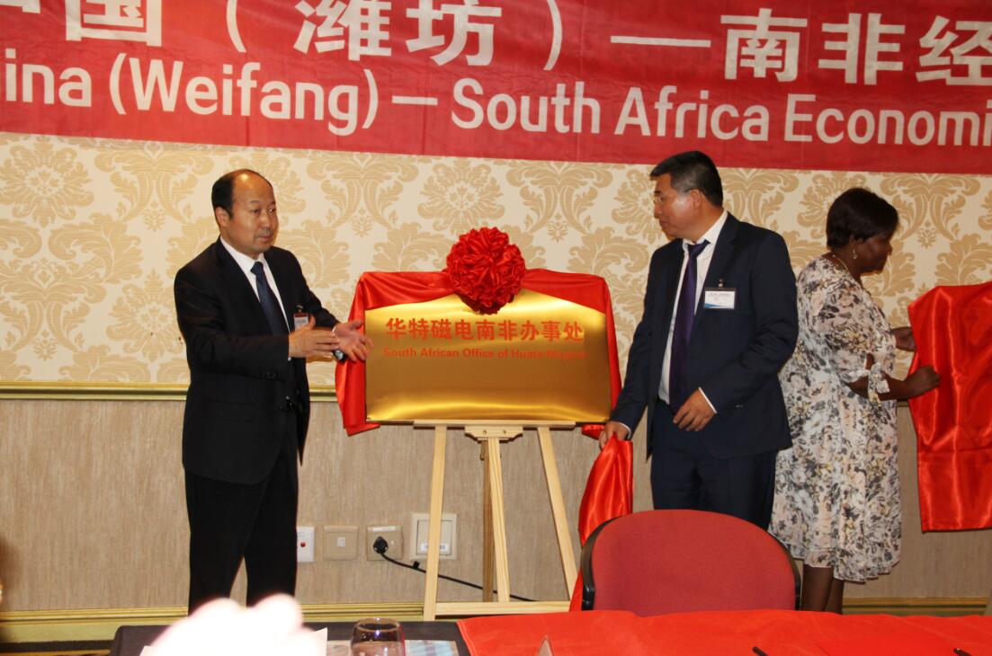 9月11日下午,由濰坊市人民政府主辦,南非AMG集團公司和山東華特磁電科技股份有限公司共同協(xié)辦的“中國(濰坊)—南非經(jīng)貿(mào)懇談會”在美麗的約翰內斯堡市凱撒皇宮大酒店會議廳隆重舉行。