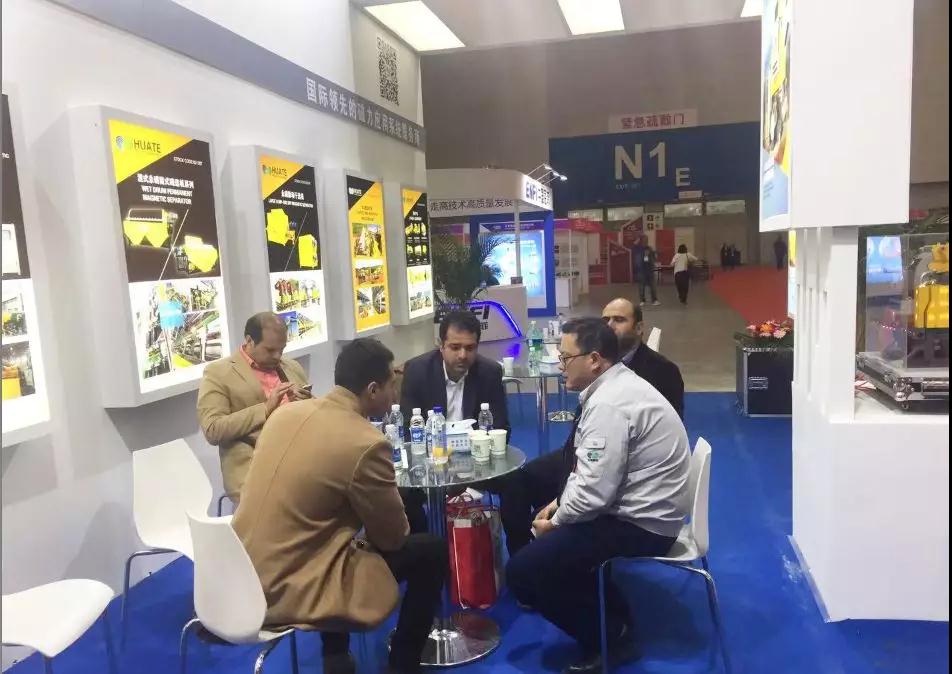 會展現場,工作人員熱情地向客戶介紹華特公司最新取得的科研成果,對客戶關心的核心產品工藝、技術性能以及產品市場占有率等情況一一作詳細解答。國內外客戶對華特公司研制的具有自主知識產權的油水復合冷卻立環高梯度磁選機、提精降渣磁選機、風選機、干選機等產品表現出極大的興趣,詳細詢問了相關產品的適用范圍、結構性能等方面,并表示希望以此次展會為契機,雙方開展廣泛而深入的合作。